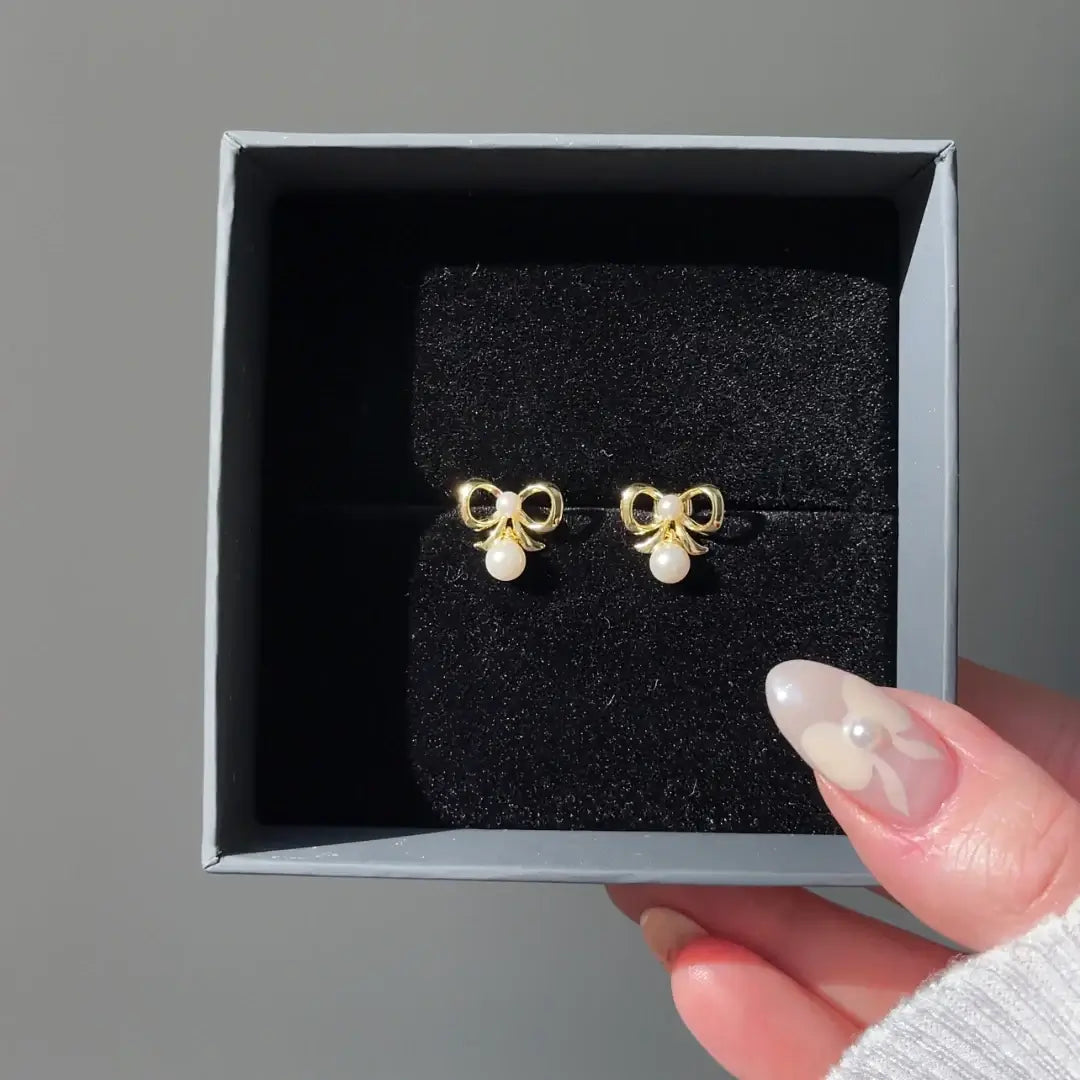 Delicate Bow Pearl Dangle Stud Earrings